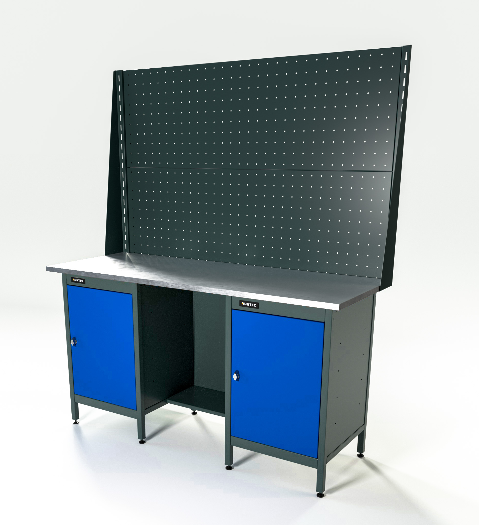 Верстак серии Standart, 1600 мм, оцинк, тумба с дверью + тумба с дверью, экран 1000, синий RAL 5005