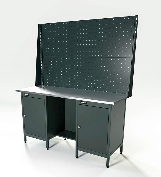 Верстак серии Standart, 1600 мм, оцинк, тумба с дверью + тумба с дверью, экран 1000, серый RAL 7016