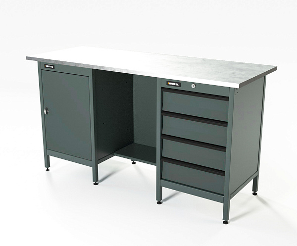 Верстак серии Standart, 1600 мм, оцинк, тумба с дверью + тумба с 4-мя ящиками, серый RAL 7016, RUNTEC, RTS16Z-TS0-TS4-7016