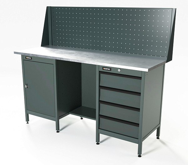 Верстак серии Standart, 1600 мм, оцинк, тумба с дверью + тумба с 4-мя ящиками, экран 500, серый RAL 7016, RUNTEC, RTS16Z-TS0-TS4-P16-7016