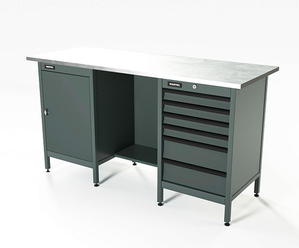 Верстак серии Standart, 1600 мм, оцинк, тумба с дверью + тумба с 6-ю ящиками, серый RAL 7016