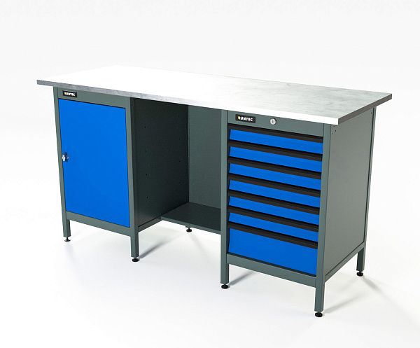 Верстак серии Standart, 1600 мм, оцинк, тумба с дверью + тумба с 7-ю ящиками, синий RAL 5005, RUNTEC, RTS16Z-TS0-TS7-5005