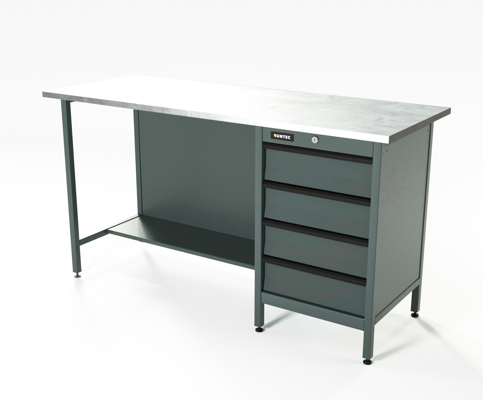 Верстак серии Standart, 1600 мм, оцинк, тумба с 4-мя ящиками, серый RAL 7016