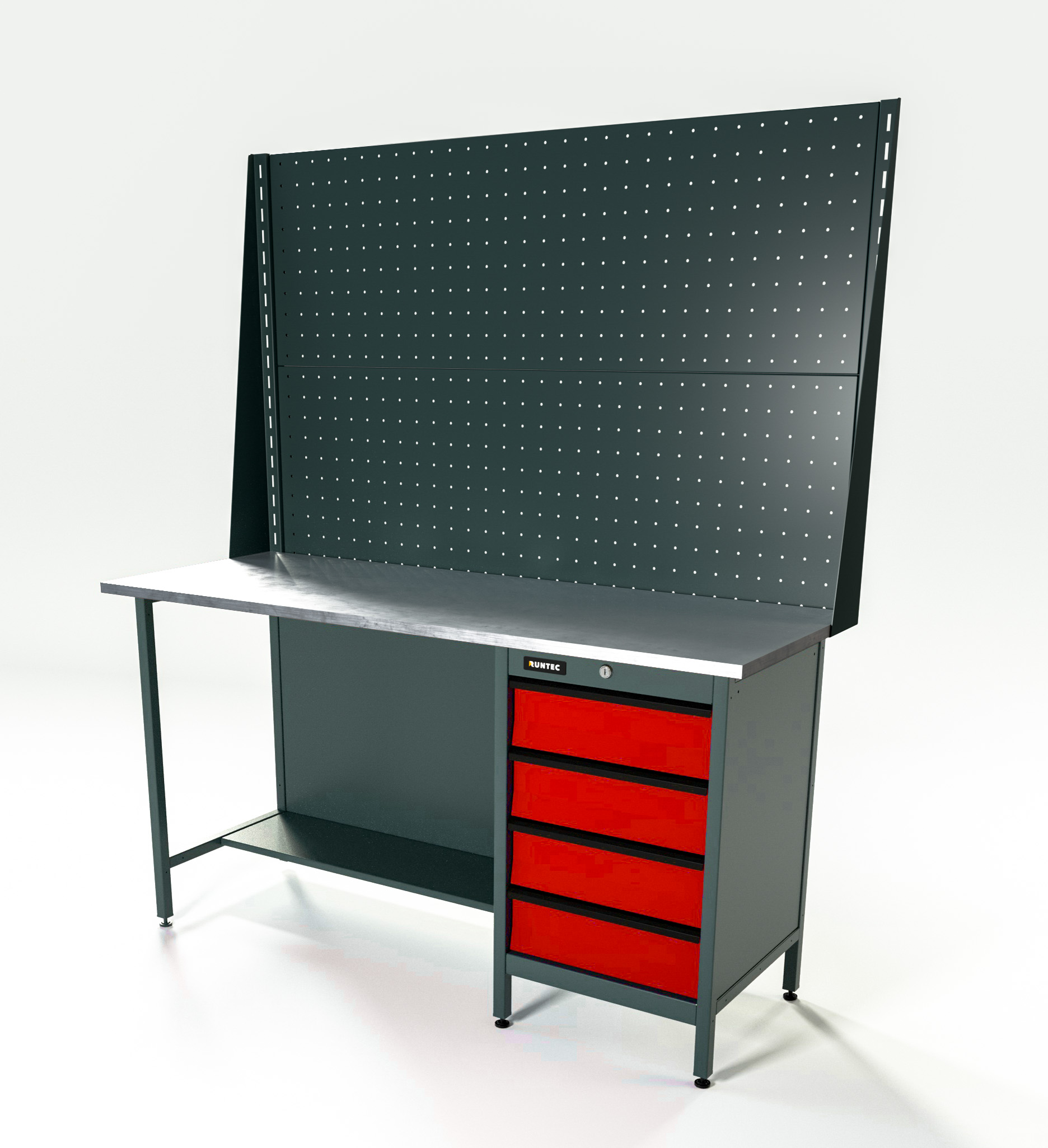 Верстак серии Standart, 1600 мм, оцинк, тумба с 4-мя ящиками, экран 1000, красный RAL 3020