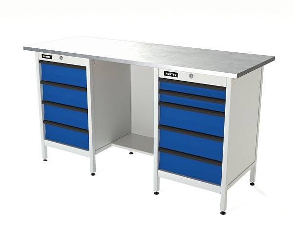 Верстак серии Standart, 1600 мм, оцинк, тумба с 4-мя ящиками + тумба с 5-ю ящиками, синий (светло-серый) RAL 5005 (7035)
