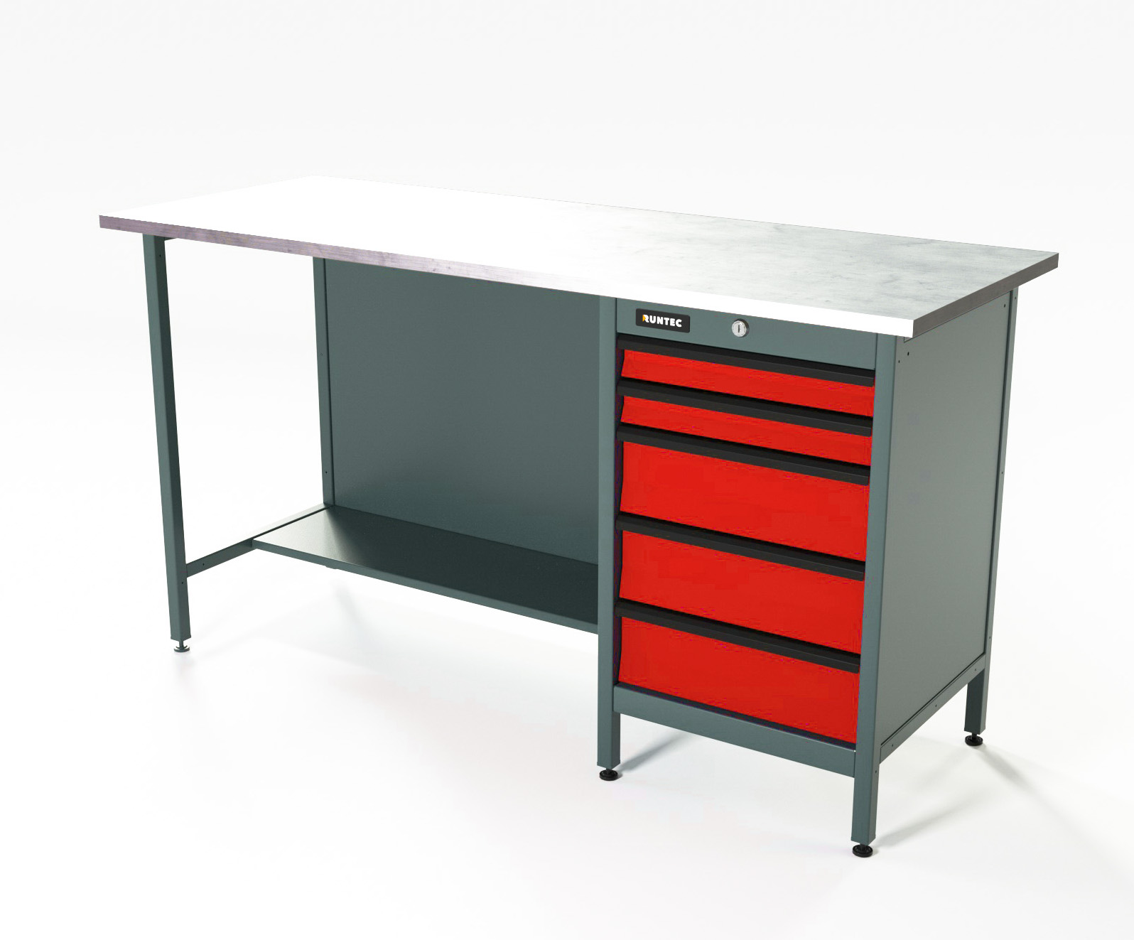 Верстак серии Standart, 1600 мм, оцинк, тумба с 5-ю ящиками, красный RAL 3020