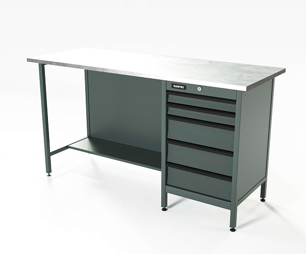 Верстак серии Standart, 1600 мм, оцинк, тумба с 5-ю ящиками, серый RAL 7016, RUNTEC, RTS16Z-TS5-NS-7016