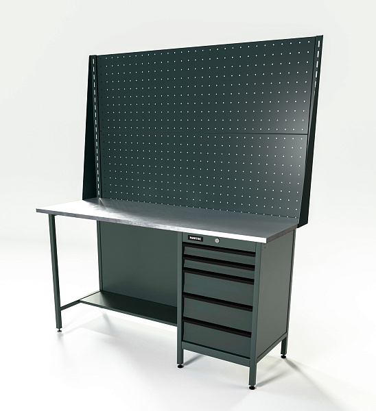Верстак серии Standart, 1600 мм, оцинк, тумба с 5-ю ящиками, экран 1000, серый RAL 7016, RUNTEC, RTS16Z-TS5-NS-P16-P16-7016