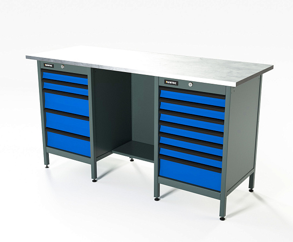 Верстак серии Standart, 1600 мм, оцинк, тумба с 5-ю ящиками + тумба с 7-ю ящиками, синий RAL 5005, RUNTEC, RTS16Z-TS5-TS7-5005