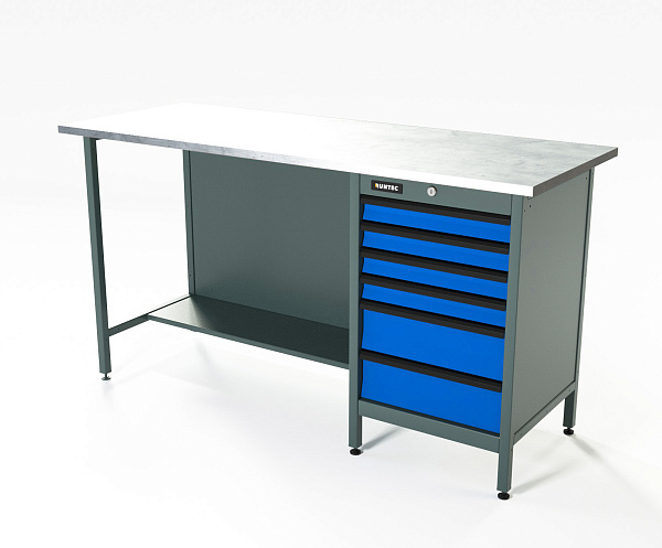 Верстак серии Standart, 1600 мм, оцинк, тумба с 6-ю ящиками, синий RAL 5005