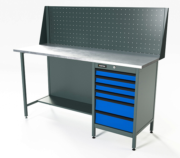 Верстак серии Standart, 1600 мм, оцинк, тумба с 6-ю ящиками, экран 500, синий RAL 5005