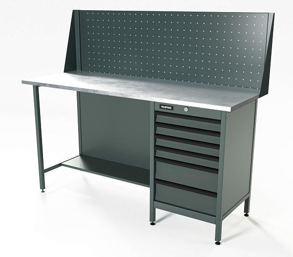 Верстак серии Standart, 1600 мм, оцинк, тумба с 6-ю ящиками, экран 500, серый RAL 7016