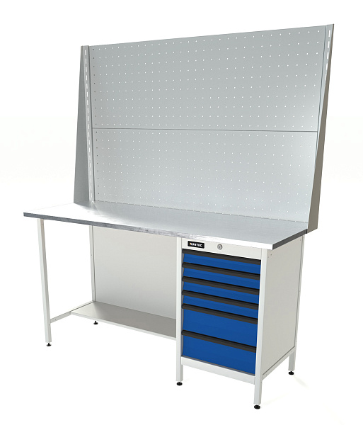 Верстак серии Standart, 1600 мм, оцинк, тумба с 6-ю ящиками, экран 1000, синий (светло-серый) RAL 5005 (7035)