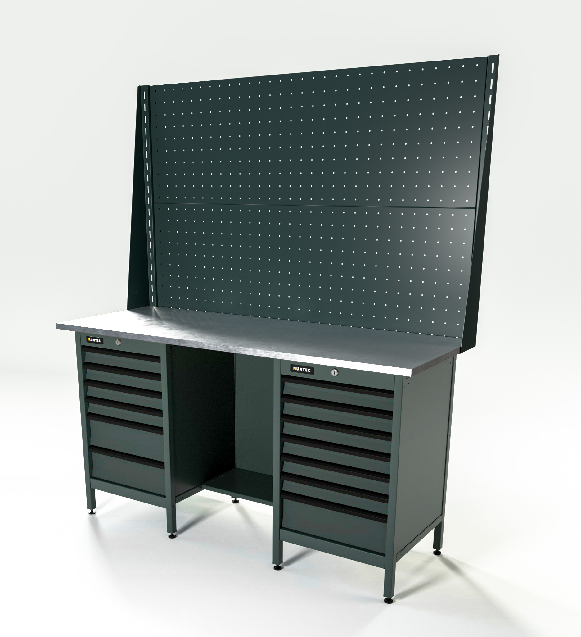 Верстак серии Standart, 1600 мм, оцинк, тумба с 6-ю ящиками + тумба с 7-ю ящиками, экран 1000, серый RAL 7016