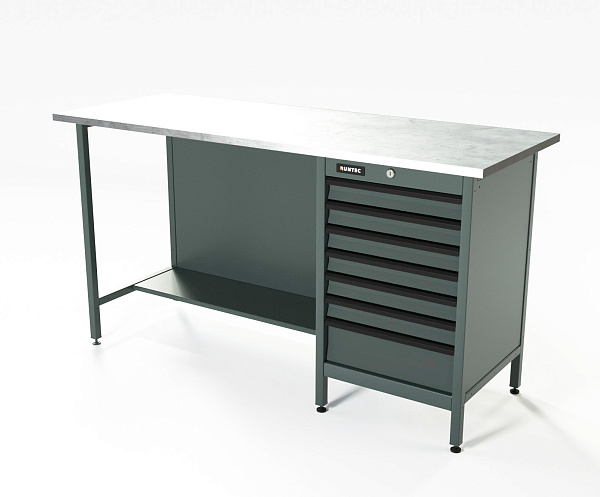 Верстак серии Standart, 1600 мм, оцинк, тумба с 7-ю ящиками, серый RAL 7016