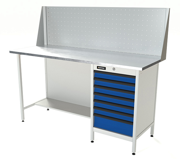 Верстак серии Standart, 1600 мм, оцинк, тумба с 7-ю ящиками, экран 500, синий (светло-серый) RAL 5005 (7035), RUNTEC, RTS16Z-TS7-NS-P16-5005(7035)
