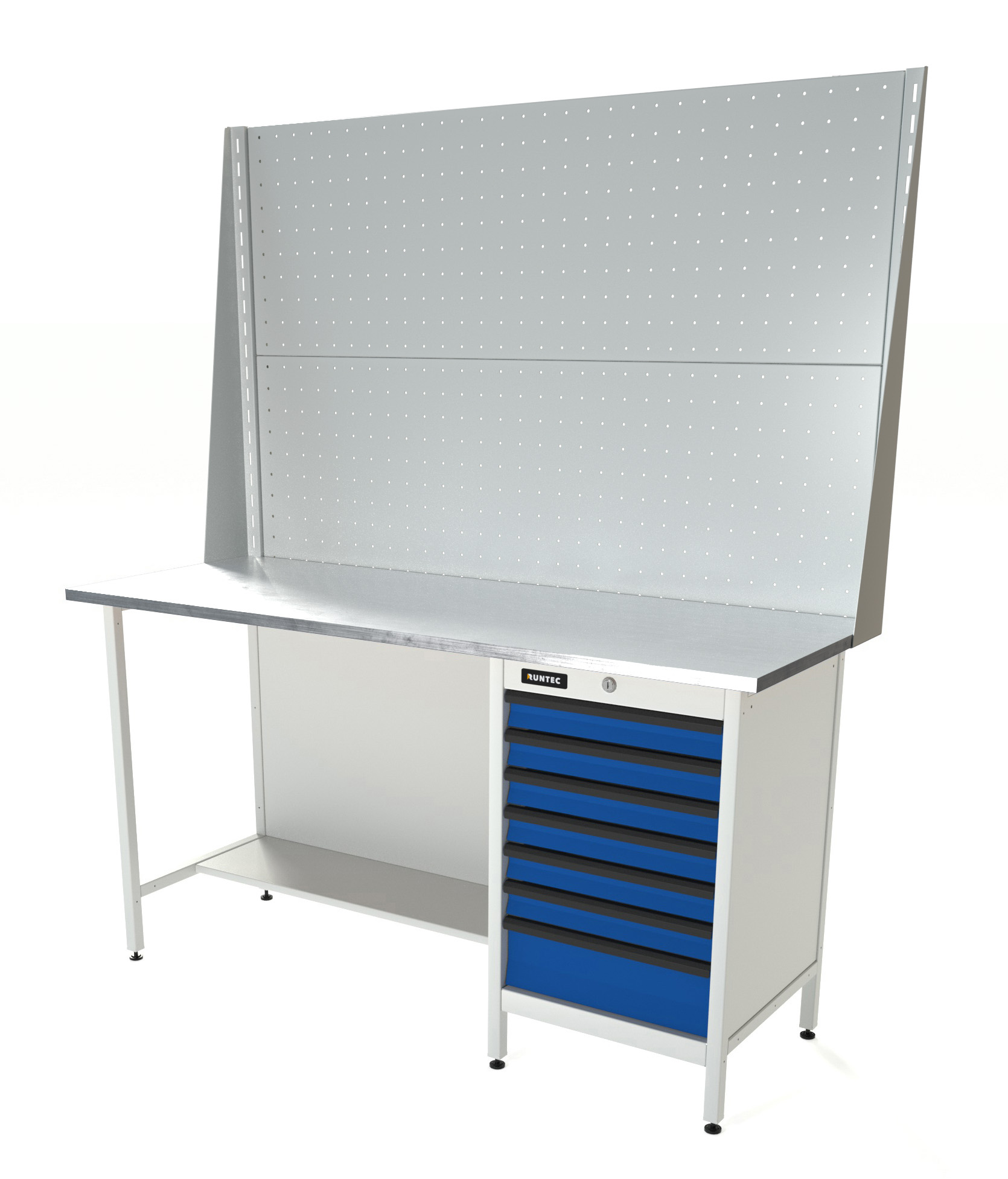 Верстак серии Standart, 1600 мм, оцинк, тумба с 7-ю ящиками, экран 1000, синий (светло-серый) RAL 5005 (7035)