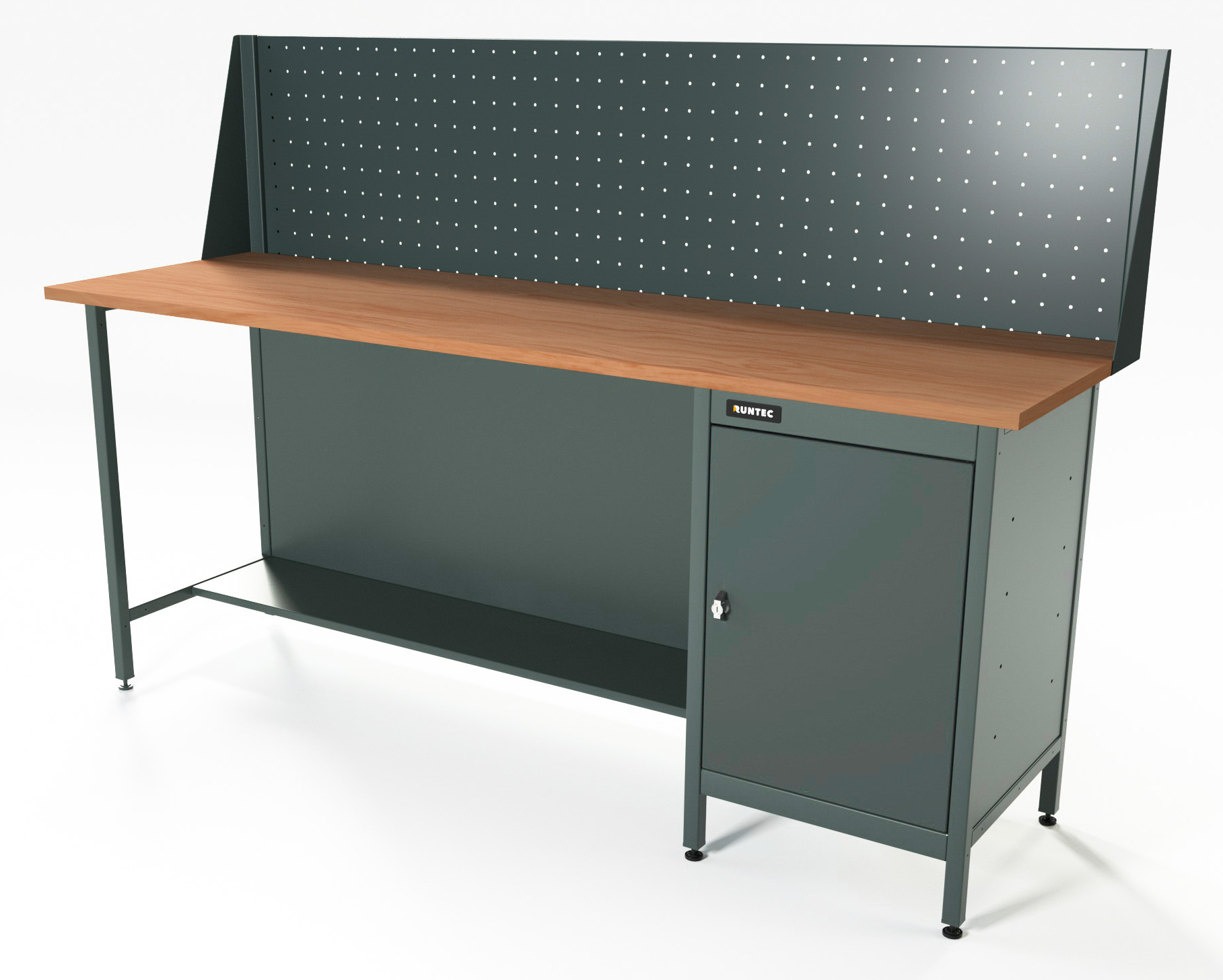 Верстак серии Standart, 2000 мм, фанера, тумба с дверью, экран 500, серый RAL 7016