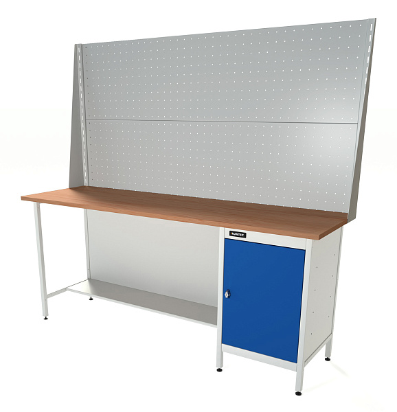 Верстак серии Standart, 2000 мм, фанера, тумба с дверью, экран 1000, синий (светло-серый) RAL 5005 (7035)