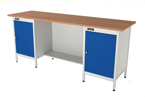 Верстак серии Standart, 2000 мм, фанера, тумба с дверью + тумба с дверью, синий (светло-серый) RAL 5005 (7035)