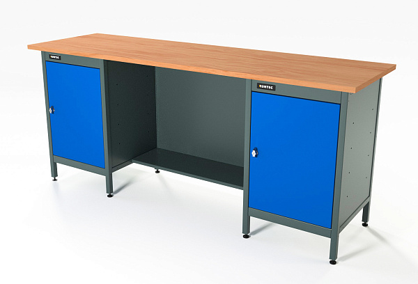 Верстак серии Standart, 2000 мм, фанера, тумба с дверью + тумба с дверью, синий RAL 5005