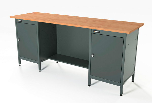 Верстак серии Standart, 2000 мм, фанера, тумба с дверью + тумба с дверью, серый RAL 7016, RUNTEC, RTS20F-TS0-TS0-7016