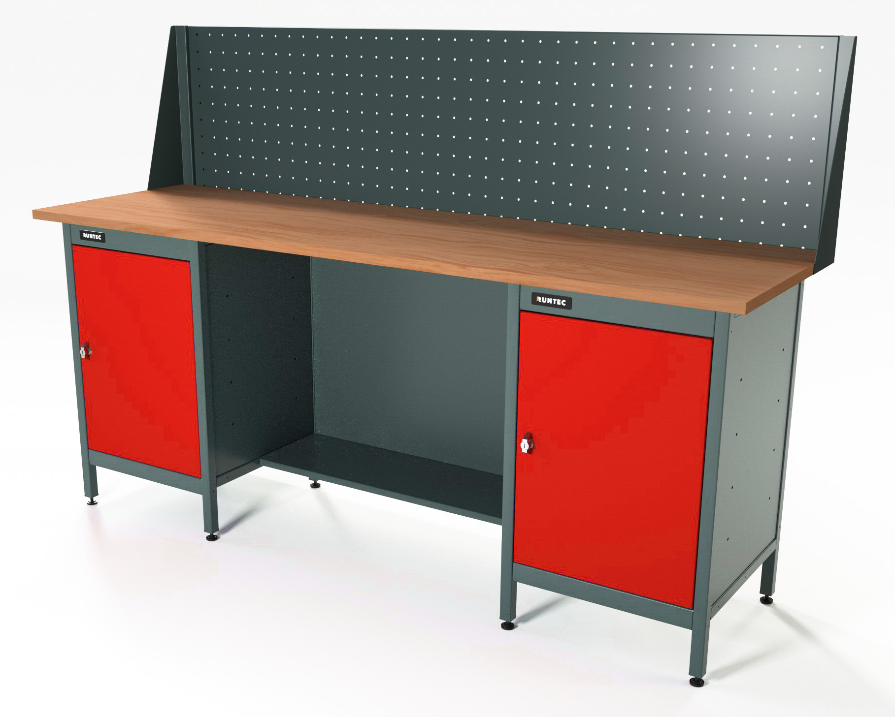 Верстак серии Standart, 2000 мм, фанера, тумба с дверью + тумба с дверью, экран 500, красный RAL 3020