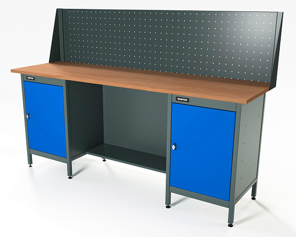 Верстак серии Standart, 2000 мм, фанера, тумба с дверью + тумба с дверью, экран 500, синий RAL 5005