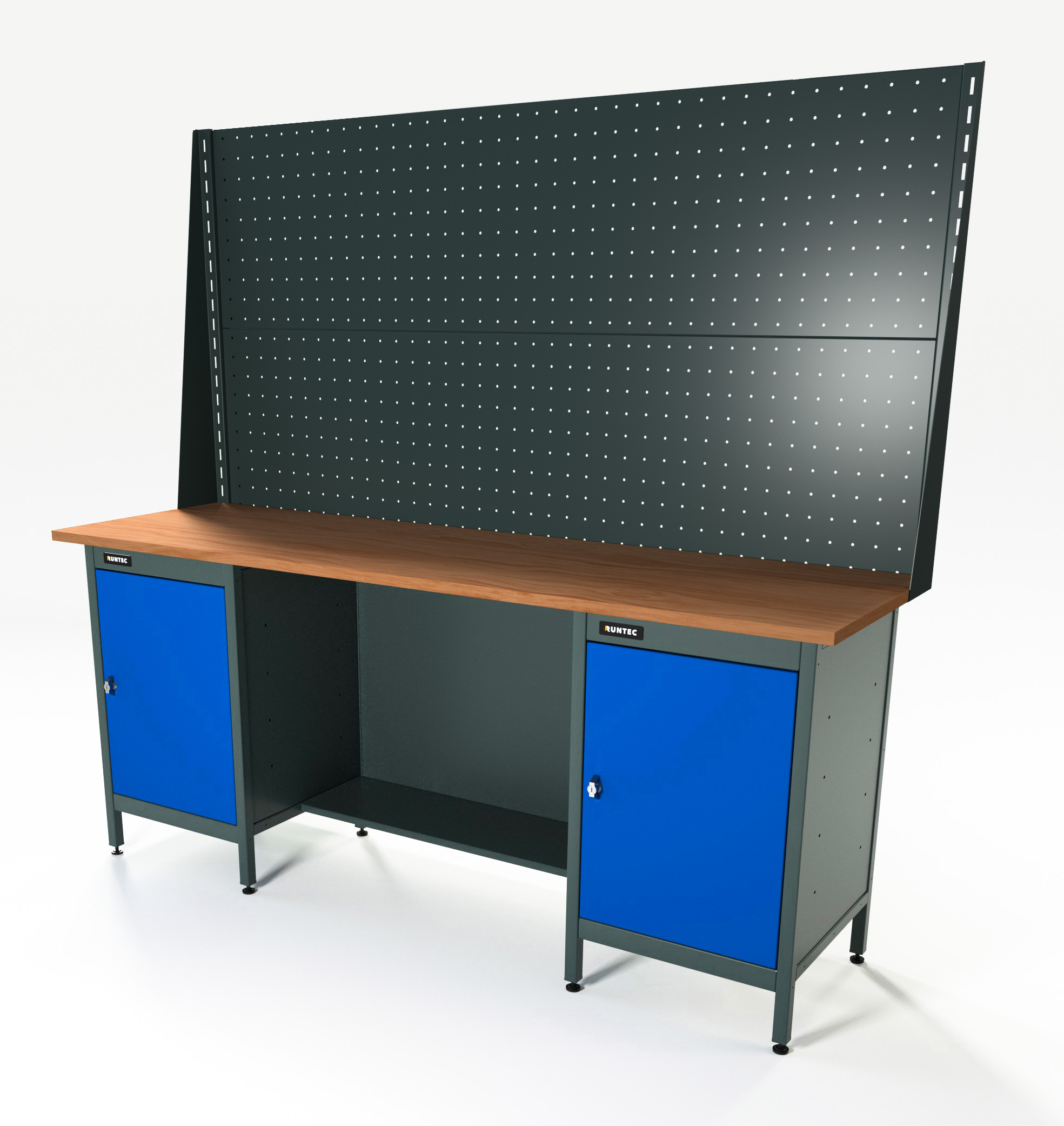 Верстак серии Standart, 2000 мм, фанера, тумба с дверью + тумба с дверью, экран 1000, синий RAL 5005