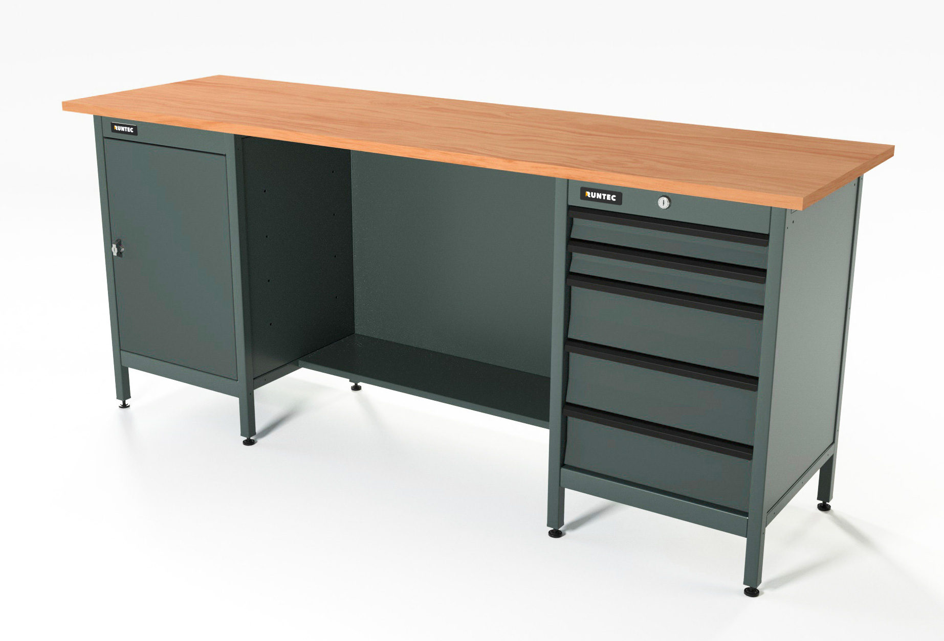 Верстак серии Standart, 2000 мм, фанера, тумба с дверью + тумба с 5-ю ящиками, серый RAL 7016