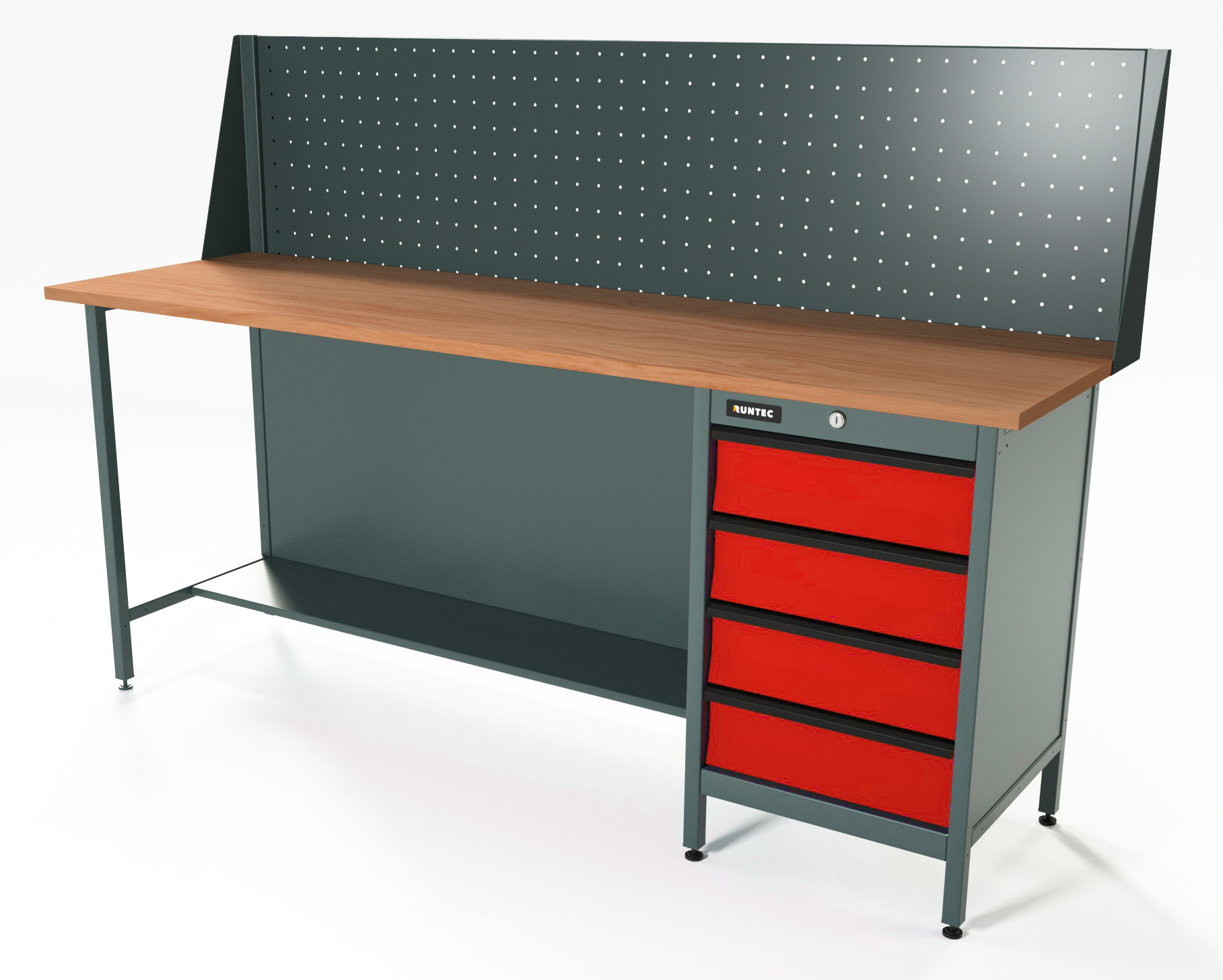 Верстак серии Standart, 2000 мм, фанера, тумба с 4-мя ящиками, экран 500, красный RAL 3020