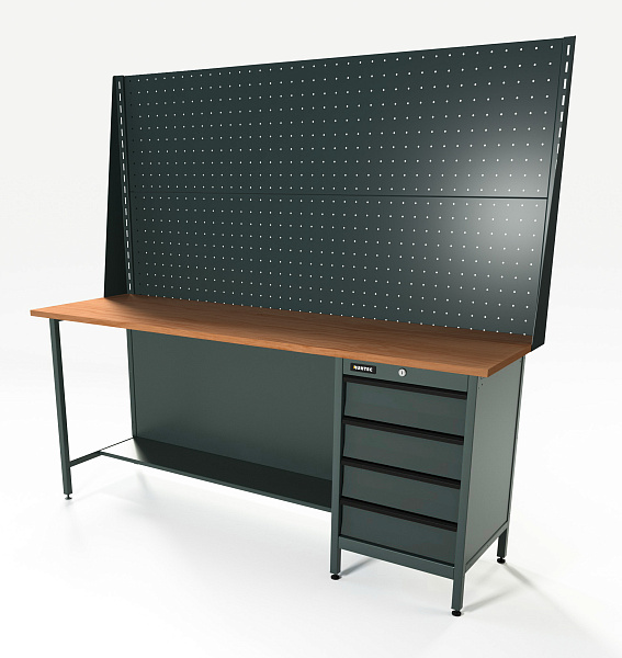 Верстак серии Standart, 2000 мм, фанера, тумба с 4-мя ящиками, экран 1000, серый RAL 7016