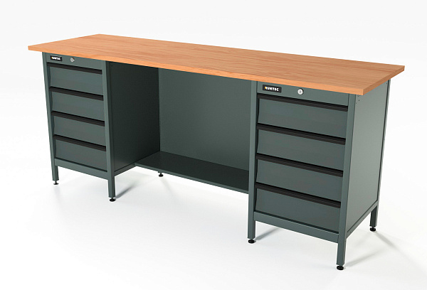 Верстак серии Standart, 2000 мм, фанера, тумба с 4-мя ящиками + тумба с 4-мя ящиками, серый RAL 7016