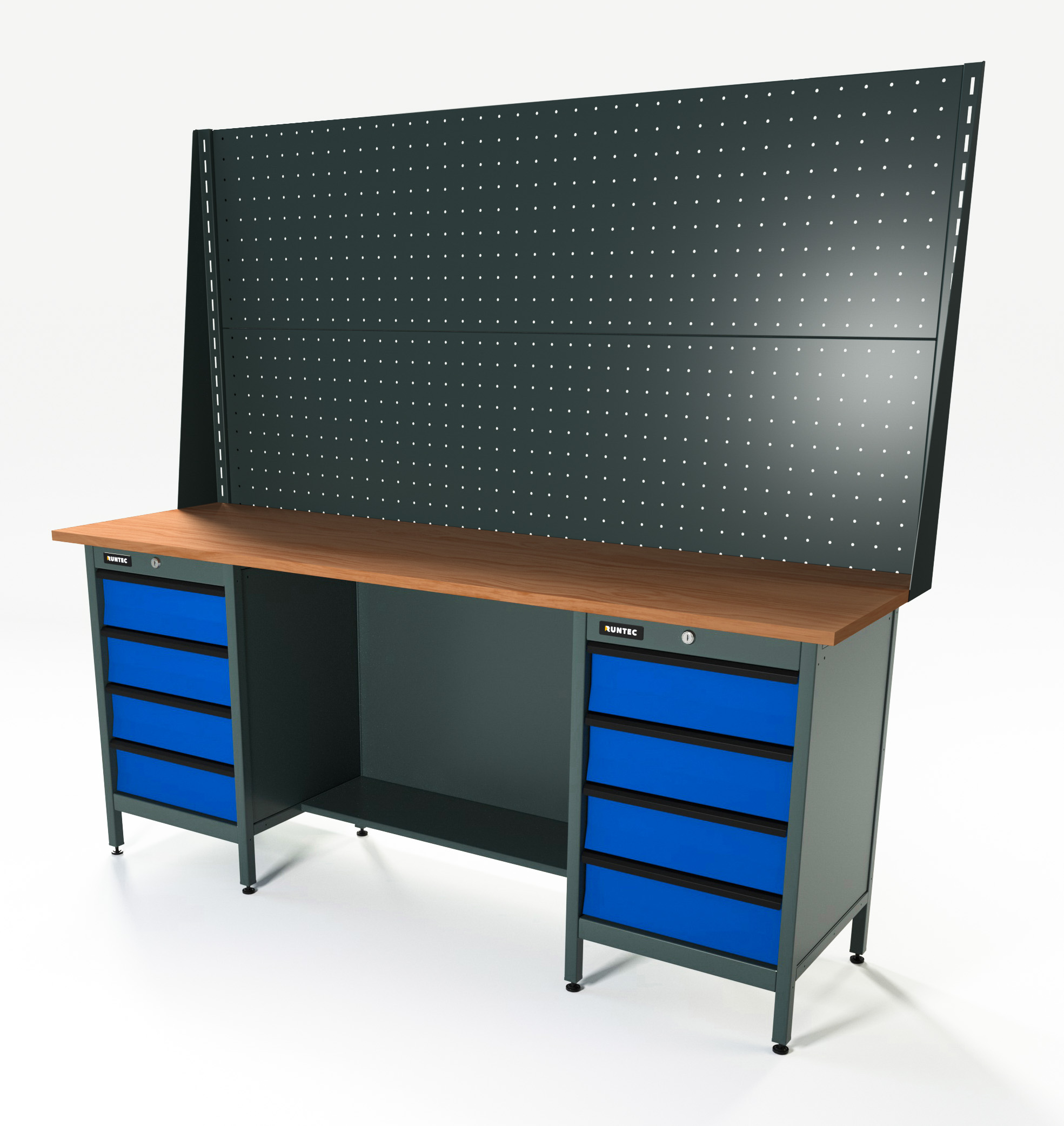Верстак серии Standart, 2000 мм, фанера, тумба с 4-мя ящиками + тумба с 4-мя ящиками, экран 1000, синий RAL 5005