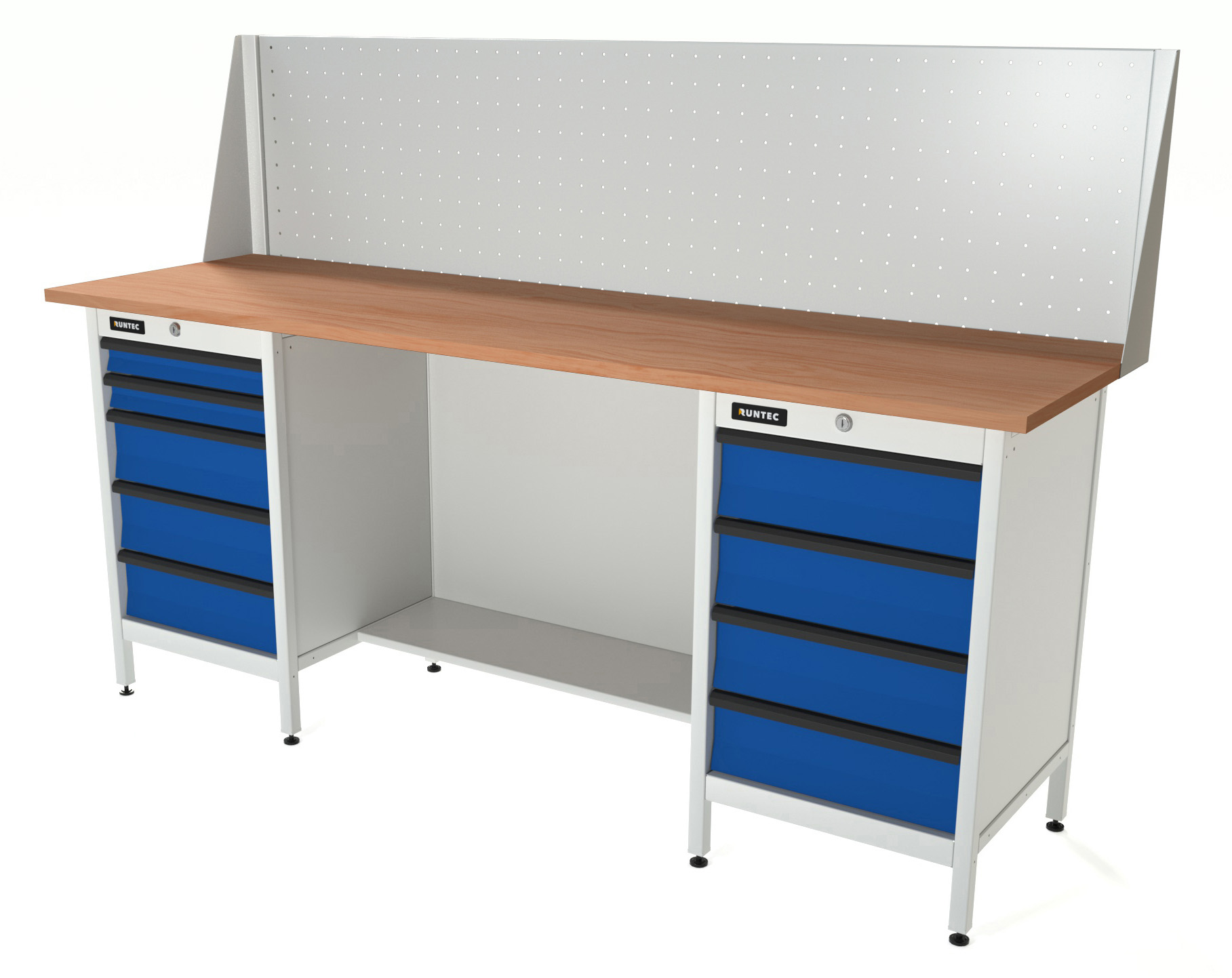 Верстак серии Standart, 2000 мм, фанера, тумба с 4-мя ящиками + тумба с 5-ю ящиками, экран 500, синий (светло-серый) RAL