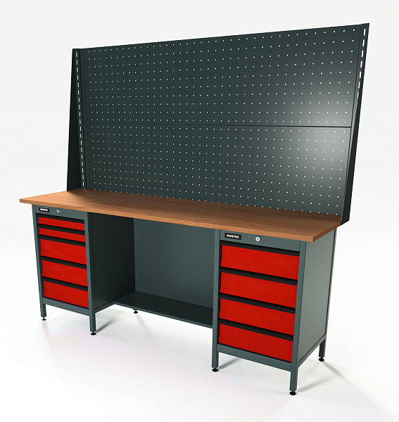 Верстак серии Standart, 2000 мм, фанера, тумба с 4-мя ящиками + тумба с 5-ю ящиками, экран 1000, красный RAL 3020