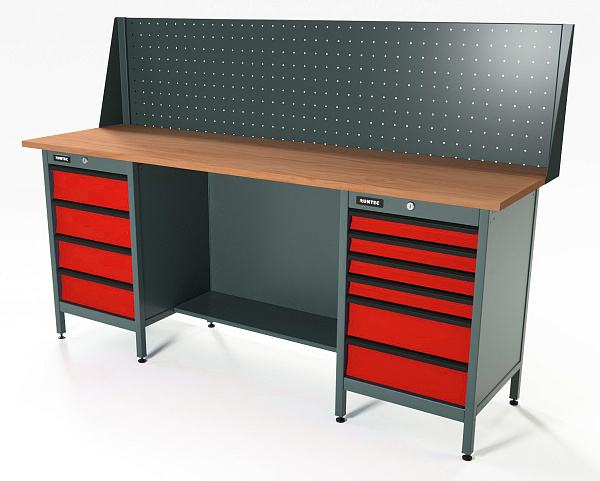 Верстак серии Standart, 2000 мм, фанера, тумба с 4-мя ящиками + тумба с 6-ю ящиками, экран 500, красный RAL 3020