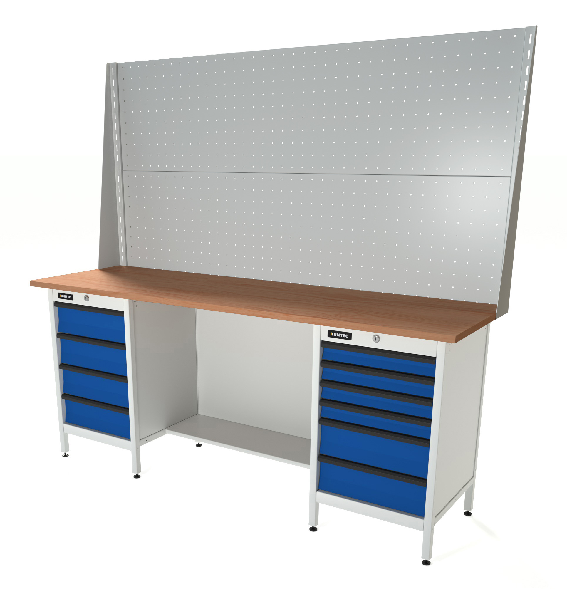 Верстак серии Standart, 2000 мм, фанера, тумба с 4-мя ящиками + тумба с 6-ю ящиками, экран 1000, синий (светло-серый) RA
