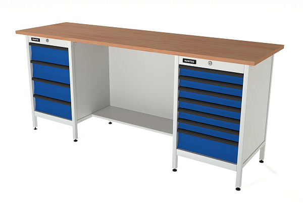 Верстак серии Standart, 2000 мм, фанера, тумба с 4-мя ящиками + тумба с 7-ю ящиками, синий (светло-серый) RAL 5005 (7035