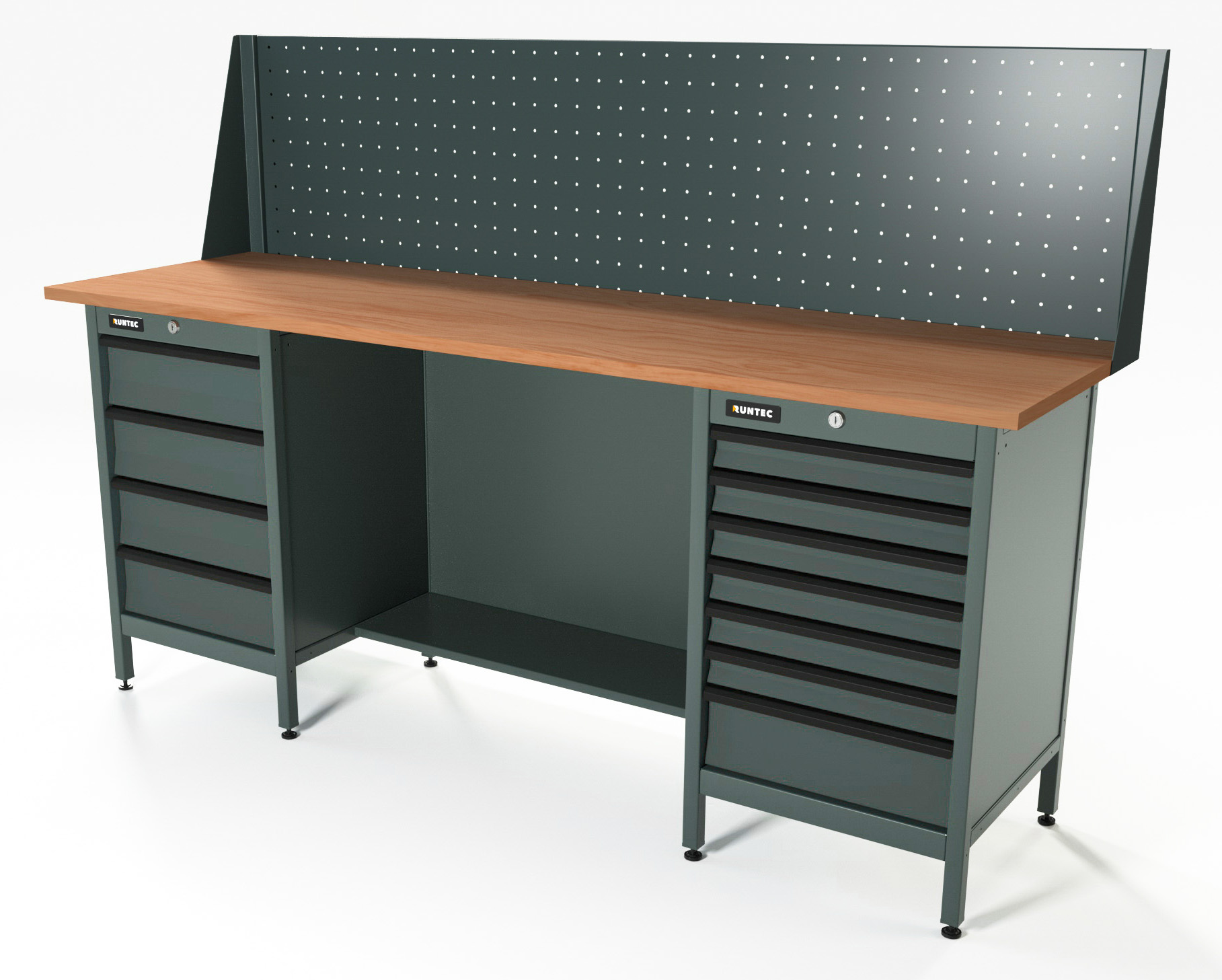 Верстак серии Standart, 2000 мм, фанера, тумба с 4-мя ящиками + тумба с 7-ю ящиками, экран 500, серый RAL 7016
