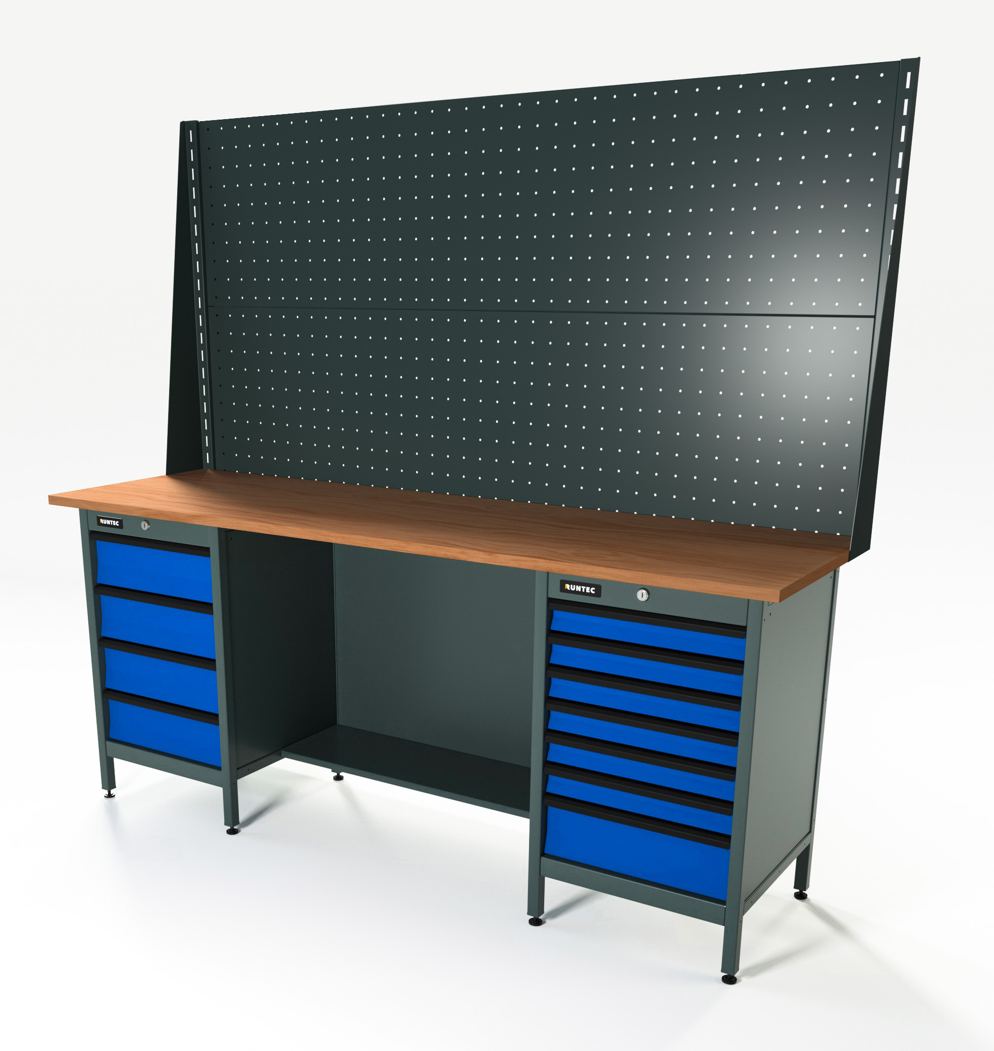 Верстак серии Standart, 2000 мм, фанера, тумба с 4-мя ящиками + тумба с 7-ю ящиками, экран 1000, синий RAL 5005