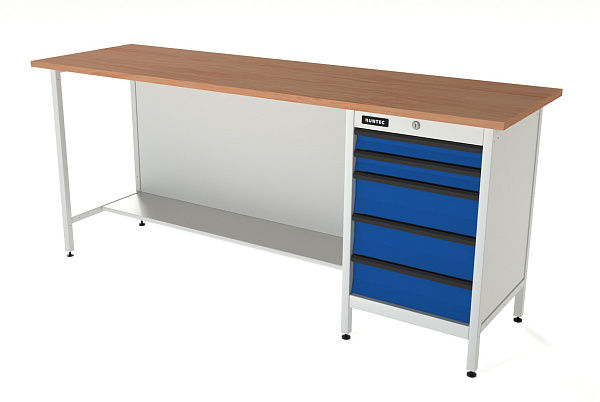 Верстак серии Standart, 2000 мм, фанера, тумба с 5-ю ящиками, синий (светло-серый) RAL 5005 (7035)