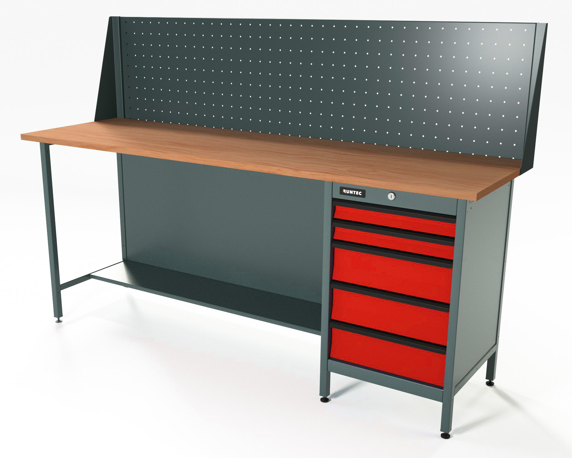 Верстак серии Standart, 2000 мм, фанера, тумба с 5-ю ящиками, экран 500, красный RAL 3020
