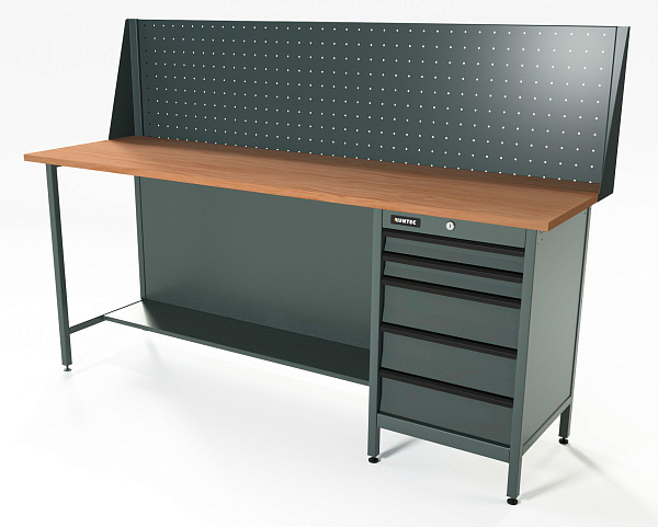 Верстак серии Standart, 2000 мм, фанера, тумба с 5-ю ящиками, экран 500, серый RAL 7016