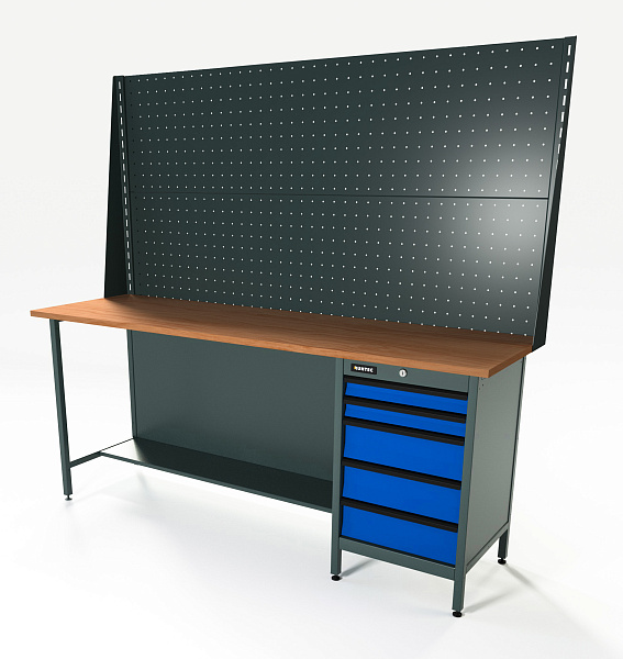 Верстак серии Standart, 2000 мм, фанера, тумба с 5-ю ящиками, экран 1000, синий RAL 5005, RUNTEC, RTS20F-TS5-NS-P20-P20-5005
