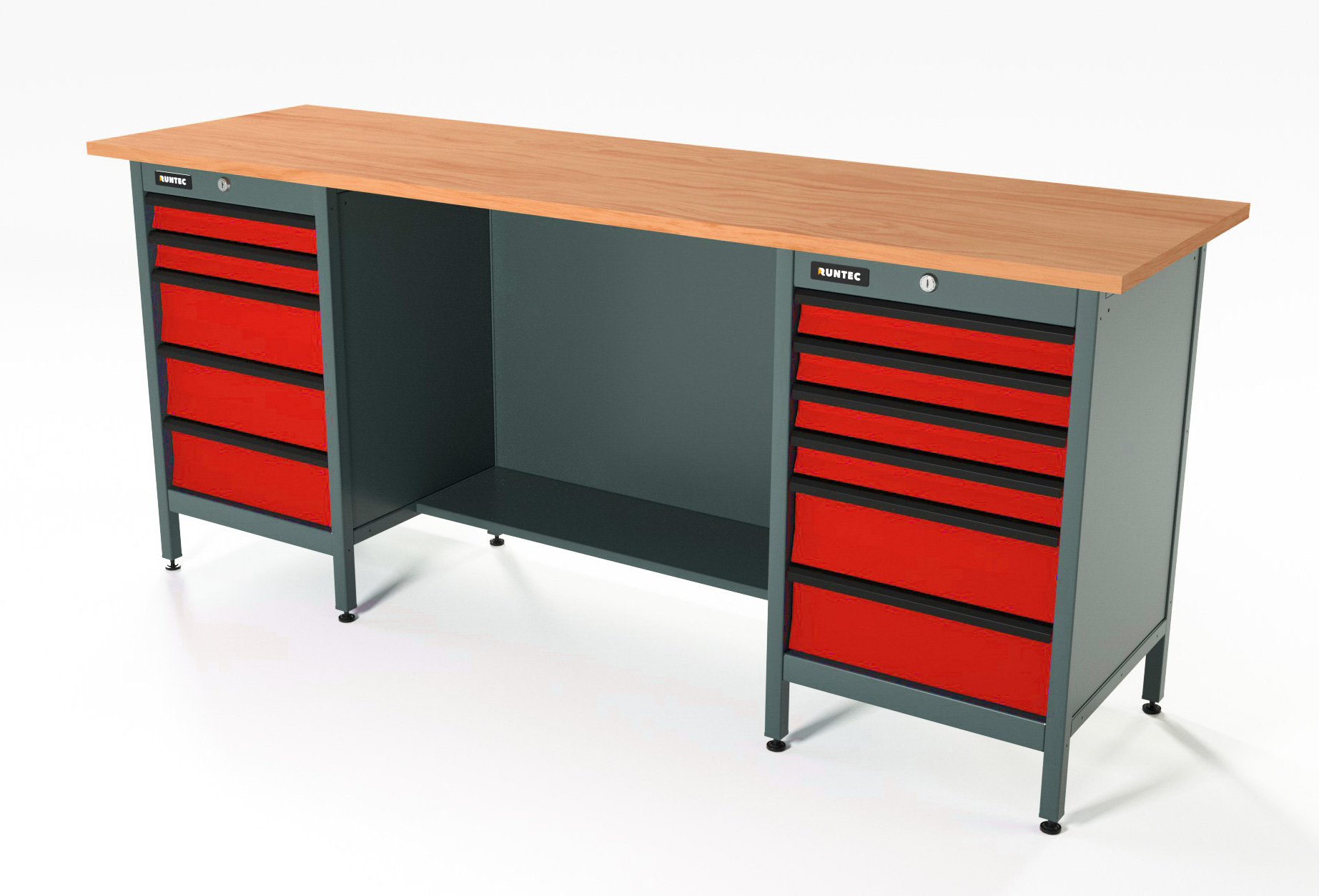 Верстак серии Standart, 2000 мм, фанера, тумба с 5-ю ящиками + тумба с 6-ю ящиками, красный RAL 3020