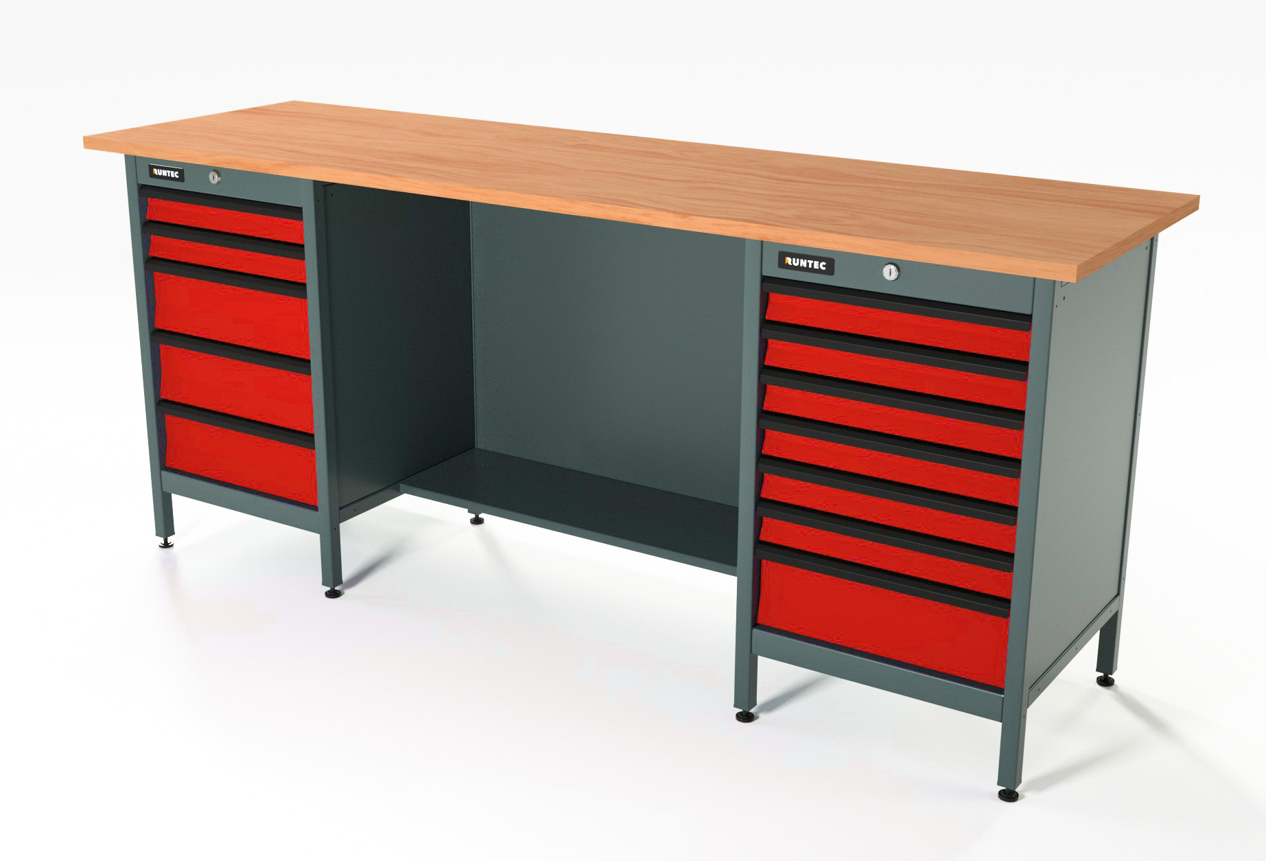 Верстак серии Standart, 2000 мм, фанера, тумба с 5-ю ящиками + тумба с 7-ю ящиками, красный RAL 3020