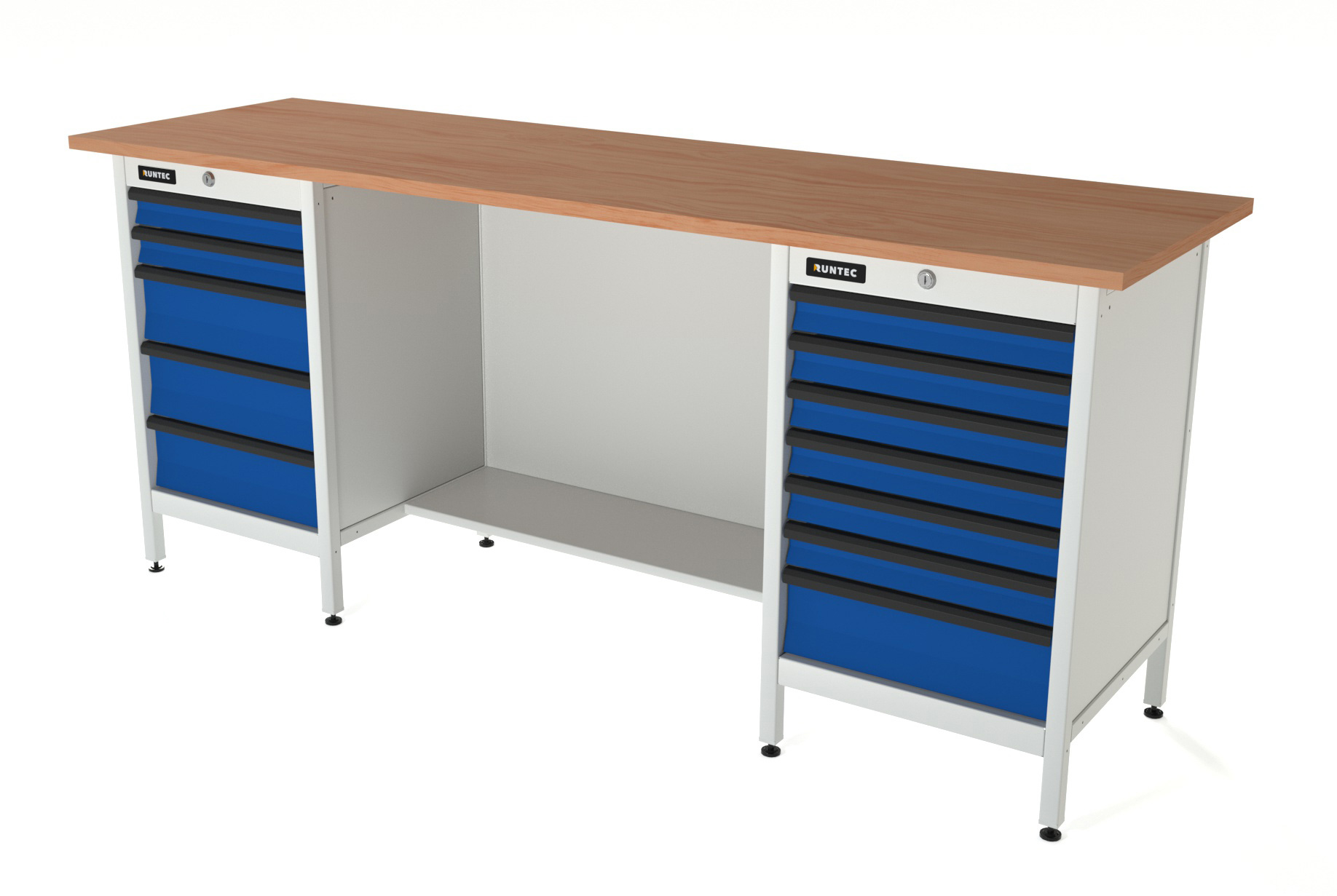Верстак серии Standart, 2000 мм, фанера, тумба с 5-ю ящиками + тумба с 7-ю ящиками, синий (светло-серый) RAL 5005 (7035)