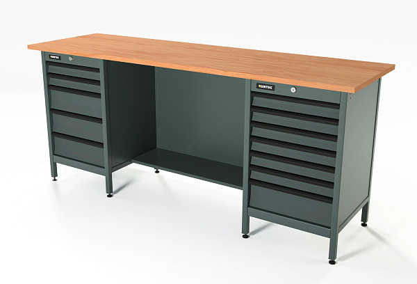 Верстак серии Standart, 2000 мм, фанера, тумба с 5-ю ящиками + тумба с 7-ю ящиками, серый RAL 7016, RUNTEC, RTS20F-TS5-TS7-7016