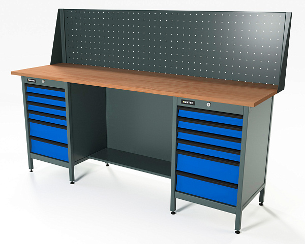 Верстак серии Standart, 2000 мм, фанера, тумба с 6-ю ящиками + тумба с 6-ю ящиками, экран 500, синий RAL 5005